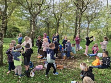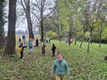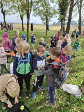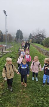 V sredo, 15.10.2025 smo igralnice 1, 4, 5, 6 in 7 izvedle skupni jesenski pohod do Dobrave. V jutranjem krogu smo se po skupinah z otroki dogovorili, kakšna bodo pravila na našem skupnem pohodu. Po malici smo se vse skupine zbrale pred vrtcem in skupaj smo se podali na daljši jesenski pohod. Pot nas je peljala mimo šolskega igrišča do viadukta, vse do polja in travnika. Naš cilj je bil travnik pri kapelici na Dobravi. Na cilju smo se okrepčali z vodo in priboljški iz nahrbtnika. Posijalo je sonce in otroci so neizmerno uživali ob prostem tekanju po travniku, po polju, gozdu ter sklepali nova prijateljstva. Preživeli smo lep, skupni dopoldanski, aktivni čas.
