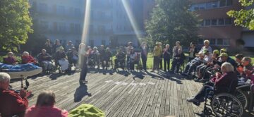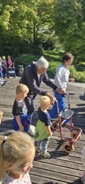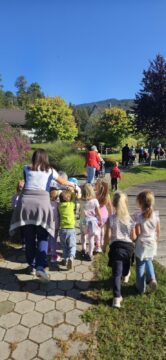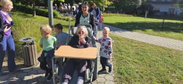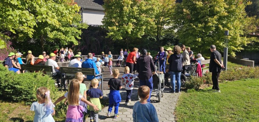 V petek, 19.9.2025 smo bile skupine 6 in 7 povabljeni v njihov čudoviti park z namenom, da ozavestimo bolezen kot je demenca. Demenca je skupek simptomov in znakov, ki se pojavljajo pri bolniku in so lahko posledica različnih bolezni. Za demenco so značilne znaki motnje spomina, zato so za nas in varovance pripravili v domu skupno igro ugotavljanja besed na določene črke. Beseda, katera je bila rešitev današnje naloge je beseda SPOMIN. Skupaj z otroki smo ugotavljali vse besede, ki se začnejo na črko S, P, O, M, I, N in tako dobili pravilno rešitev. Varovanci imajo tudi čudovit park, ki njihovim svojcem in prijateljem omogoča sprehode po tlakovanih poteh, posedanje v senčnih kotičkih in neposreden stik z naravo. Tako smo tudi mi na ta dan izkoristili krajši sprehod z varovanci po njihovem parku in si tako pridobili dragocene trenutke z njimi. Otroci so se ob tem učili spoštovanja do starejših oseb, razvijali sočutje in empatijo in pridobivali občutek, da lahko z drobnimi dejanji osrečijo druge.