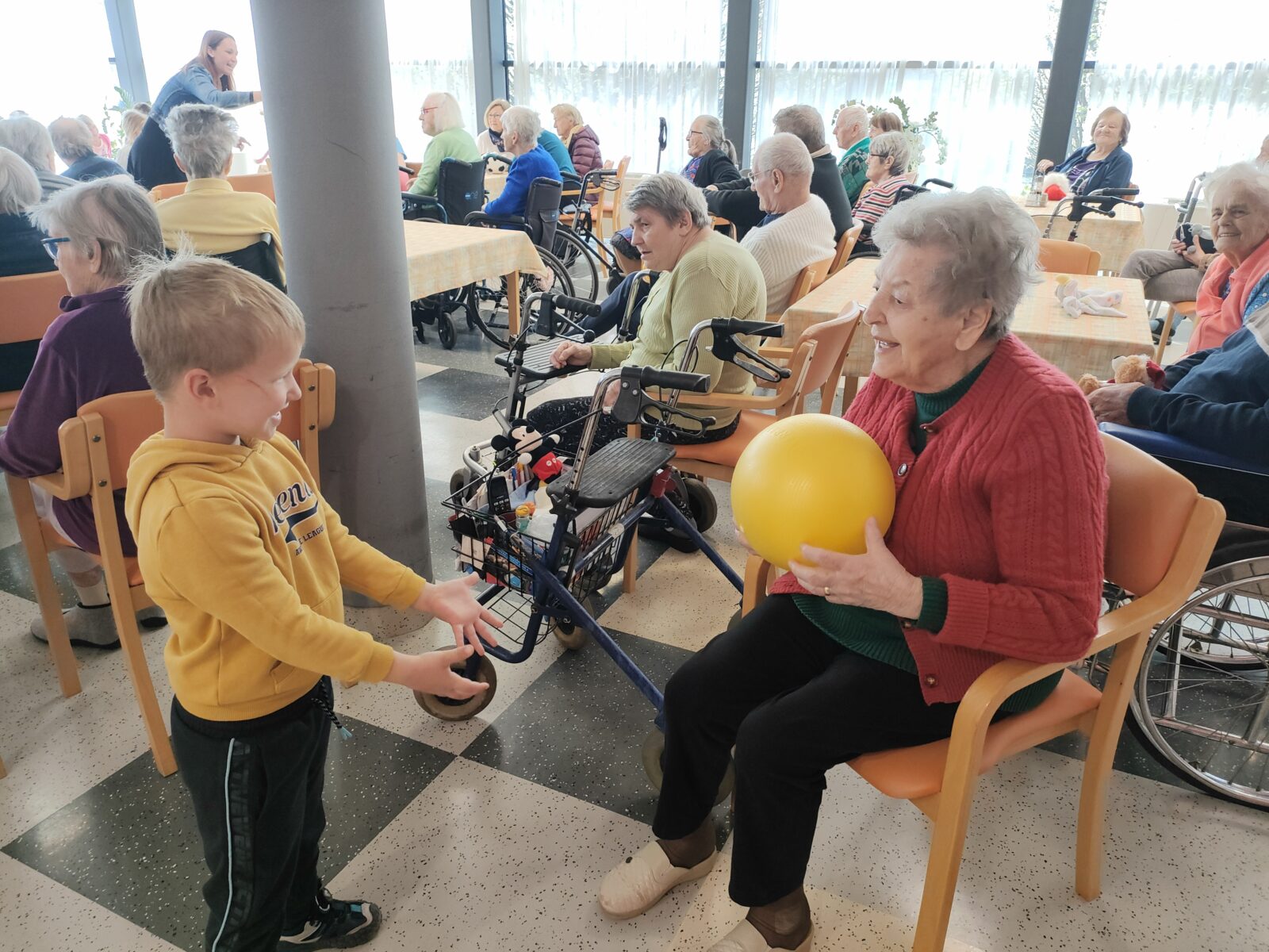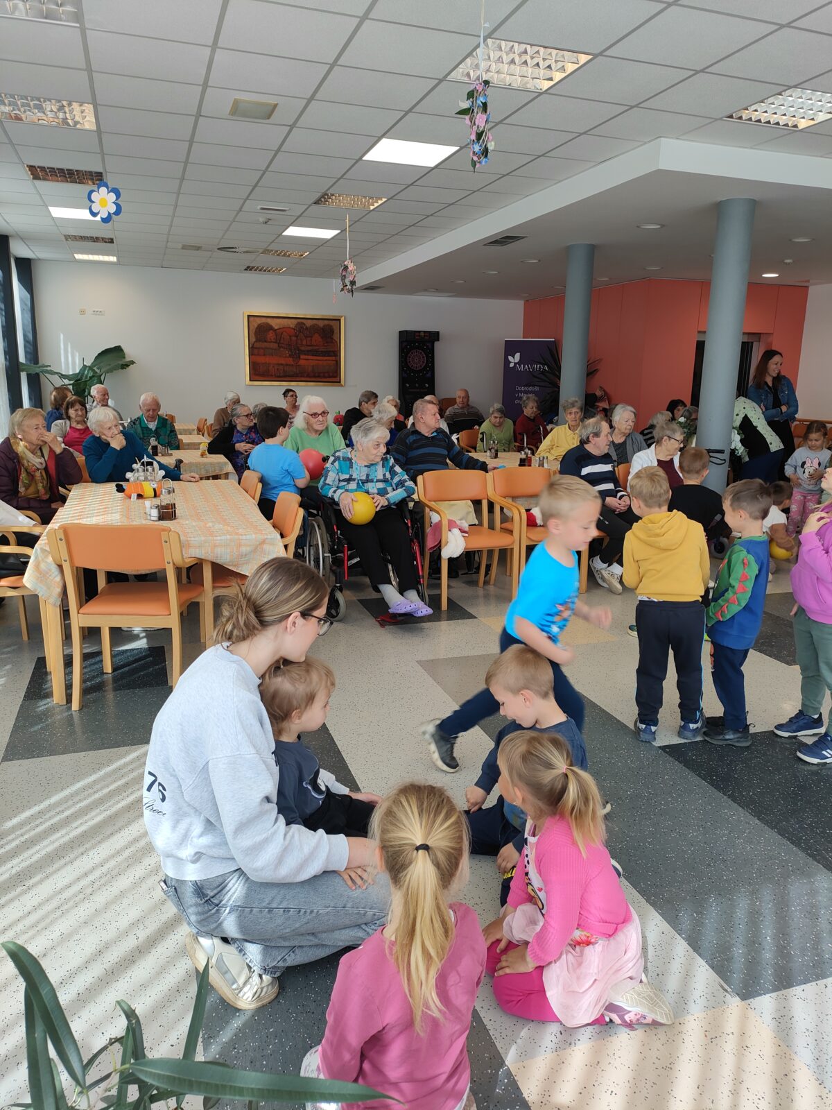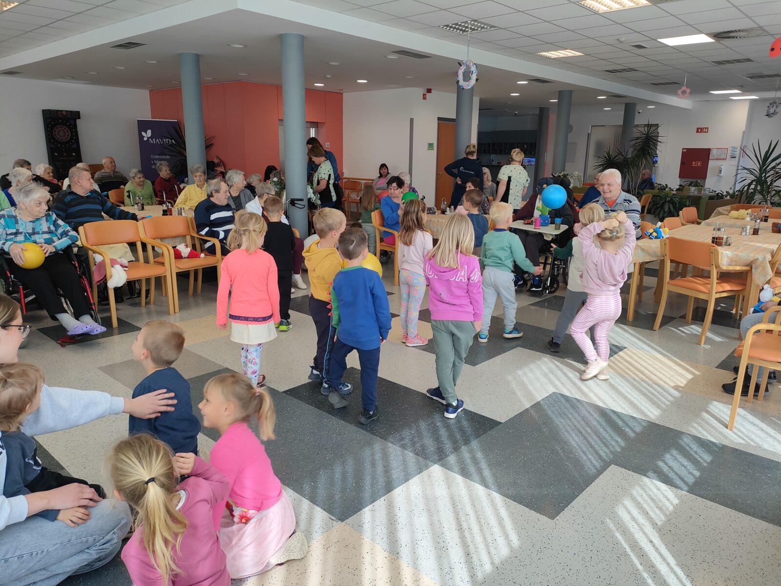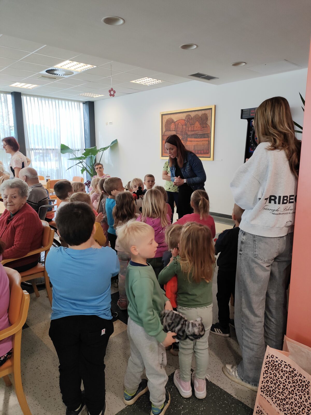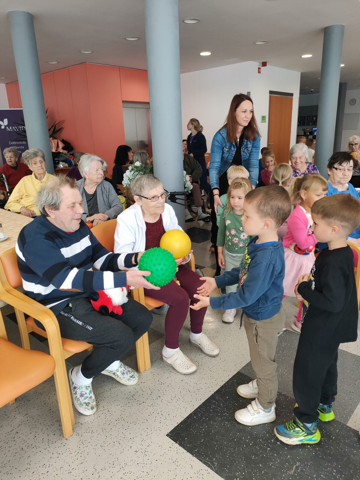 V petek, 10. 4. 2026, smo z otroki obiskali varovance v Domu Mavida Residence Hmelina Radlje. Namen obiska je bil razveseliti stanovalce doma in jim podariti plišaste igrače. Otroci so dobrih 14 dni prinašali plišaste igrače v vrtec prav s tem namenom, da bi lahko vsak izmed njih enemu izmed varovancev podaril svojo izbrano igračo.