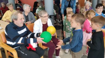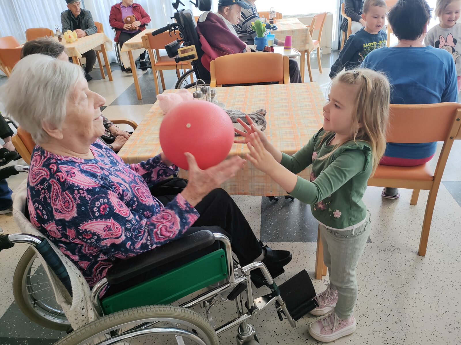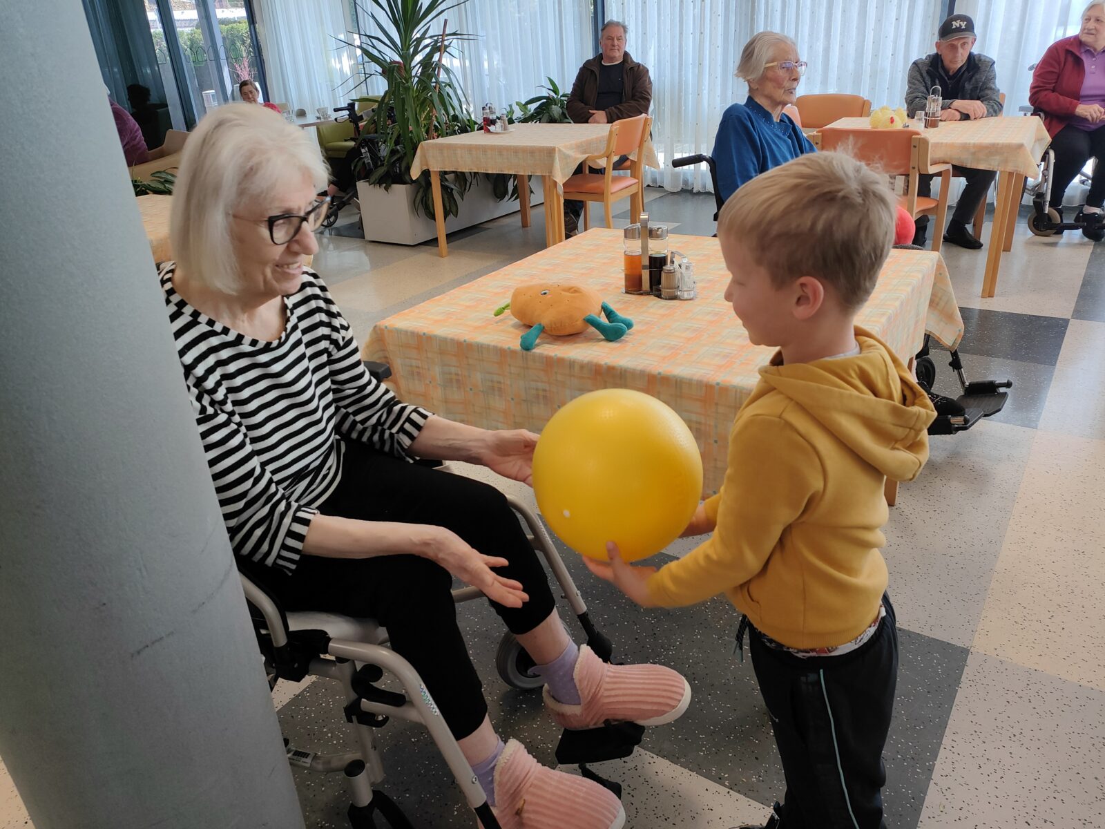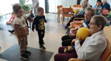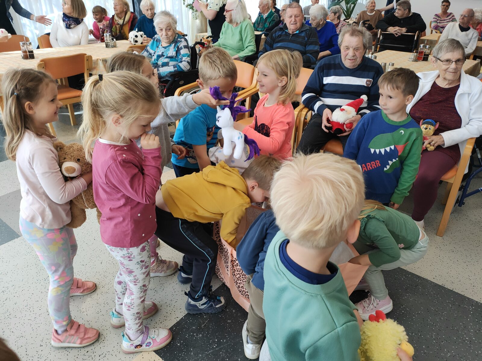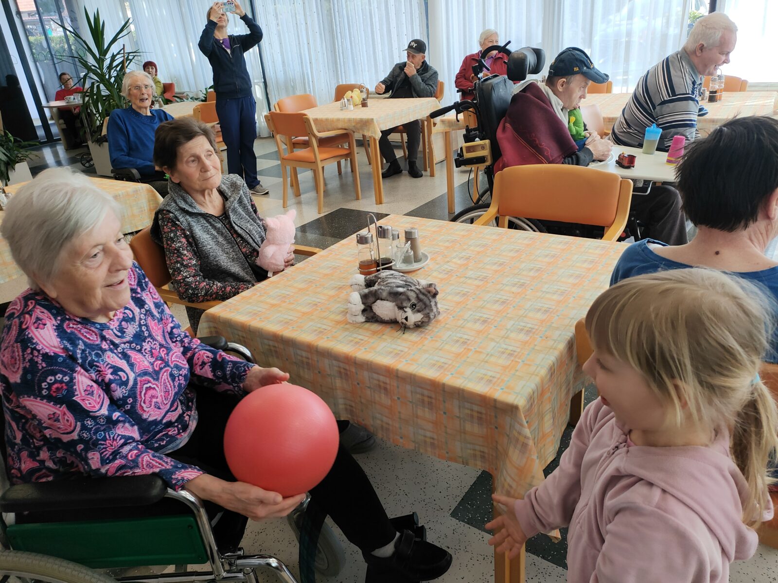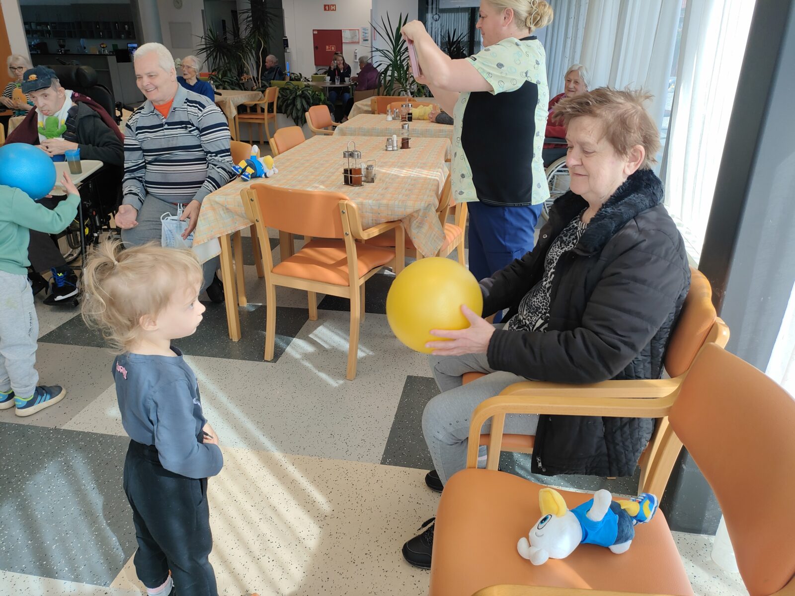 V petek, 10. 4. 2026, smo z otroki obiskali varovance v Domu Mavida Residence Hmelina Radlje. Namen obiska je bil razveseliti stanovalce doma in jim podariti plišaste igrače. Otroci so dobrih 14 dni prinašali plišaste igrače v vrtec prav s tem namenom, da bi lahko vsak izmed njih enemu izmed varovancev podaril svojo izbrano igračo.