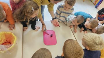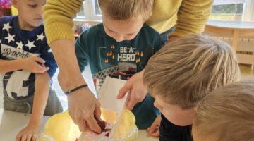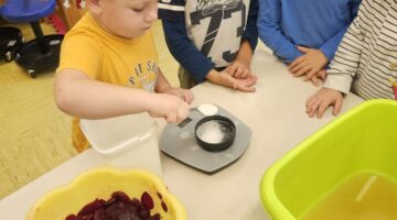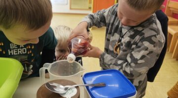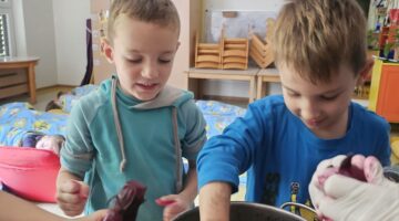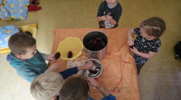 Med kosilom so se otroci začeli pogovarjati o rdeči pesi – o tisti slastni solati, ki jo pogosto dobimo k obroku. Eden od dečkov je povedal, da jo doma skupaj z mamo pripravlja, zato je v skupini hitro vzniknila ideja, da bi jo pripravili tudi mi. Skupaj smo naredili načrt: kdo bo prinesel recept, kdo ima doma rdečo peso in kdo bo poskrbel za kozarce. Vse smo zapisali in načrt obesili na vidno mesto.