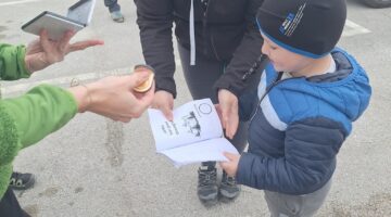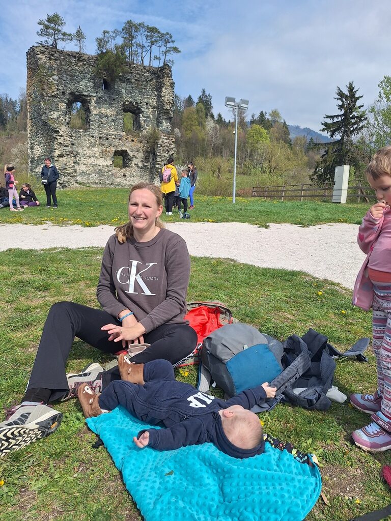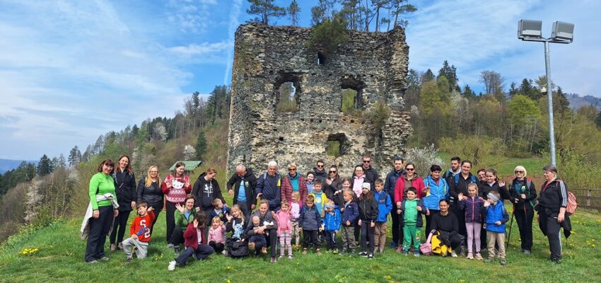 V soboto 11.aprila smo cici in mladi planinci osvojili še en grad v naši bližini. Tokrat grad v Dravogradu po lepo in varno urejeni krožni gozdni učni poti z istim imenom, za katero skrbe planinci iz PD Dravograd. Pot je bila zanimiva, s številnimi razgledi na reko Dravo in njeno okolico, seveda markantne grajske stene ne smemo izpustiti. Manjše in malo daljše noge so strmino brez prevelikih problemov premagovale, izjema je bil le najmlajši pohodnik Ožbej, kateri pa ni naredil nobenega koraka, saj je brez težav užival v maminem nahrbtniku. Nujno je potrebno omeniti nekaj nenačrtovanih dogodkov. Na »Grajski bajti« so ob našem prihodu svojemu namenu predajali v uporabo »gozdno kjnižnico«, brigadirji so malo pred tem v okviru čistilne akcije poskrbeli za urejeno okolje, otroci in planinci dravograjske osnovne šole pa so vse skupaj obogatili s kratkim kulturnim programom. Tudi mi smo bili deležni tega slavja, saj so nas pri vrnitvi z gradu počastili z zelo dobrim pasuljem. Seveda smo se lepo zahvalili, se od njih poslovili in v naši že običajni koloni zakorakali proti cilju, kjer smo našo pot tudi pričeli.