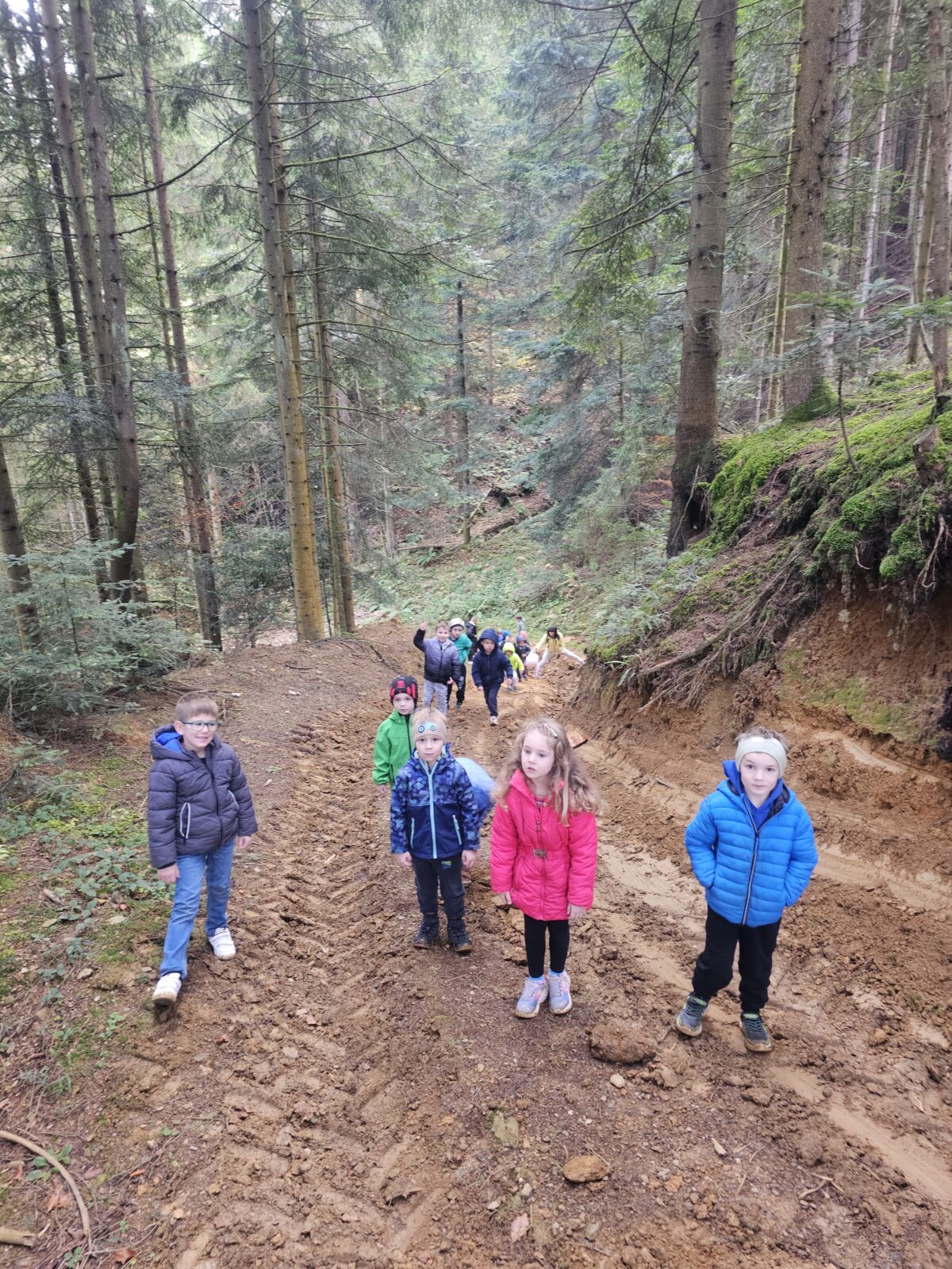 Po njihovih besedah smo se odpravili proti klopci na hribu pri smučišču. Otroci so povedali, da je bila pot dolga, na njej pa so opazili »veliko markacij«, »veliko ovinkov« in celo »veliko prepadov«. Po poti so stopali po kamnih, listju in blatu, kar jim je bilo hkrati zabavno in razburljivo.