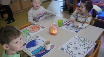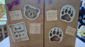 Ko smo medvedke našli in prebrali njihova sporočila, se je zgodba še globlje zasidrala v otroška srca. Navdihnjeni z zgodbico so otroci v vrtcu izdelali voščilnice in vanje zapisali lepe misli ter sporočila za starše.